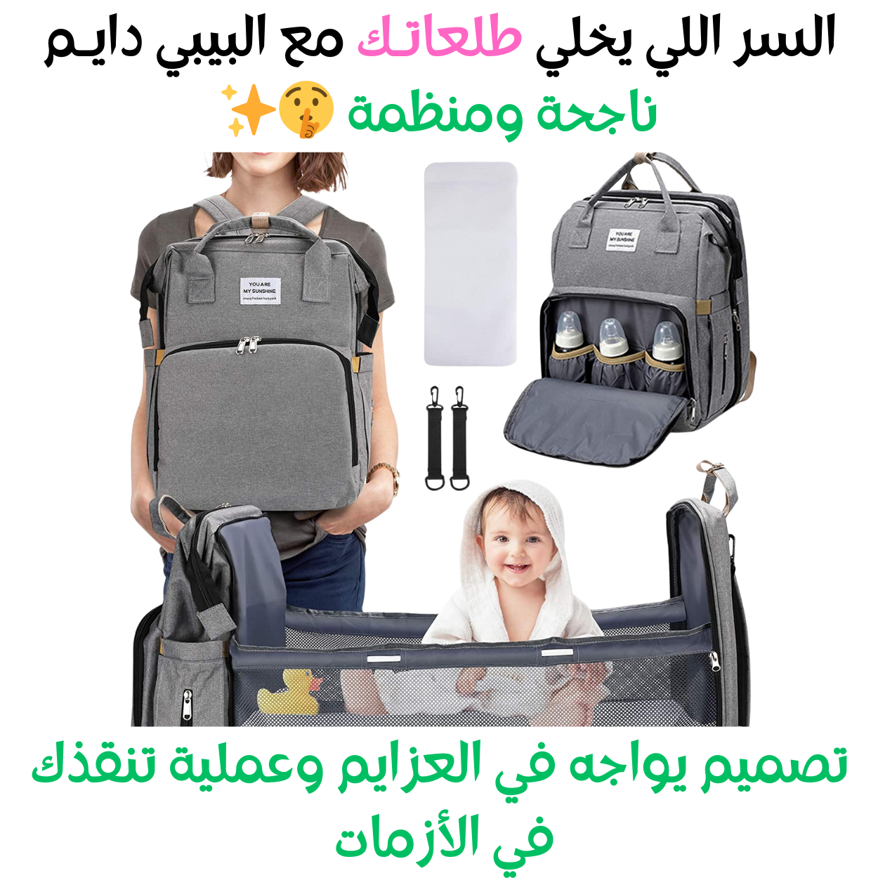 هل تبحثين عن حل يريحك من زحمة الأغراض ويوفر لطفلك مكان مريح للنوم في أي مكان؟ مع شنطة "ماميز" المبتكرة، لن تحتاجي لحمل سرير متنقل ثقيل؛ فهي شنطة أنيقة تسع كل أغراضك وتتحول بلمحة عين لسرير مريح وآمن لطفلك، كل ذلك في منتج واحد ذكي بضمان ذهبي!