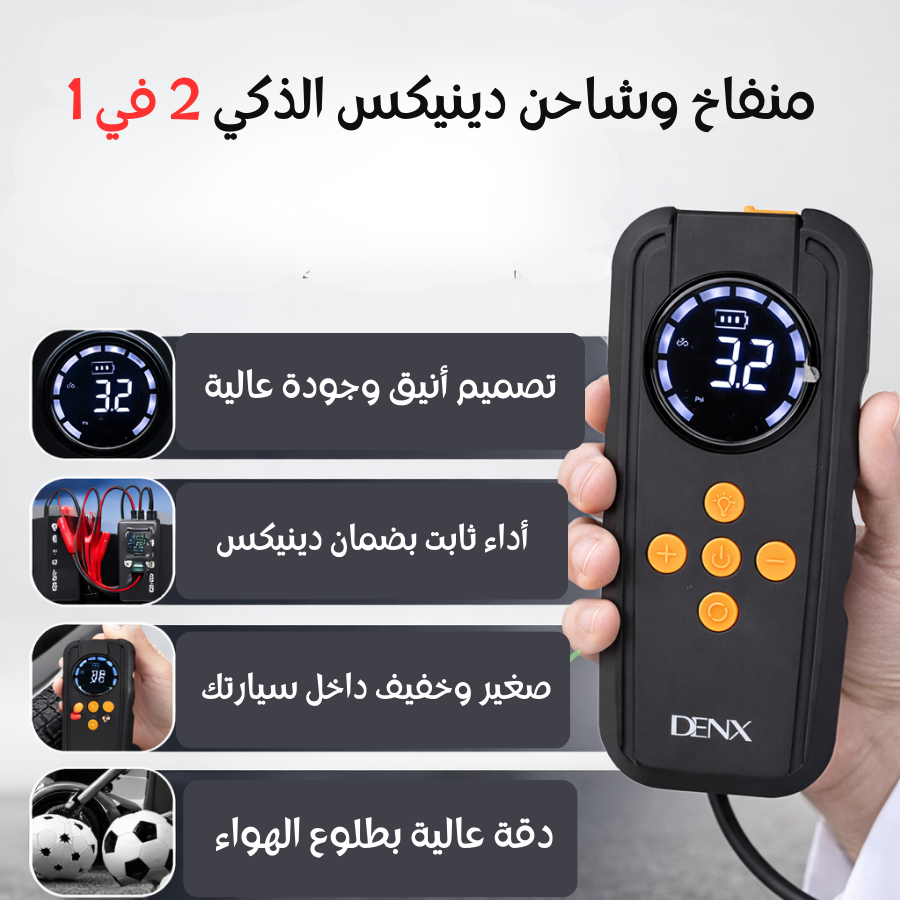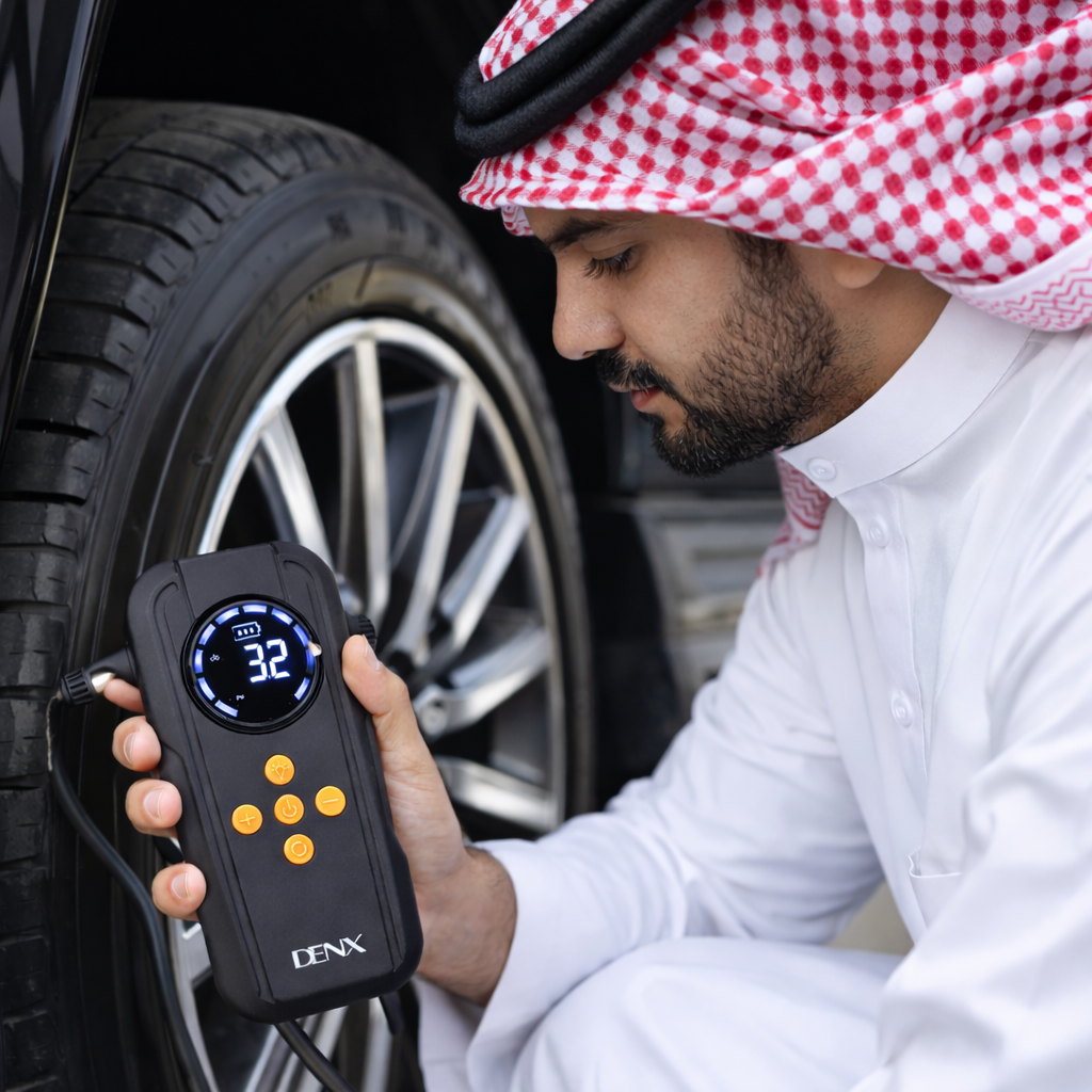 ⚡ خلك جاهز لكل الظروف مع قمر مول! اطلب منفاخ وشاحن دينيكس الآن وريّح بالك من هم الطرق والبنشر.